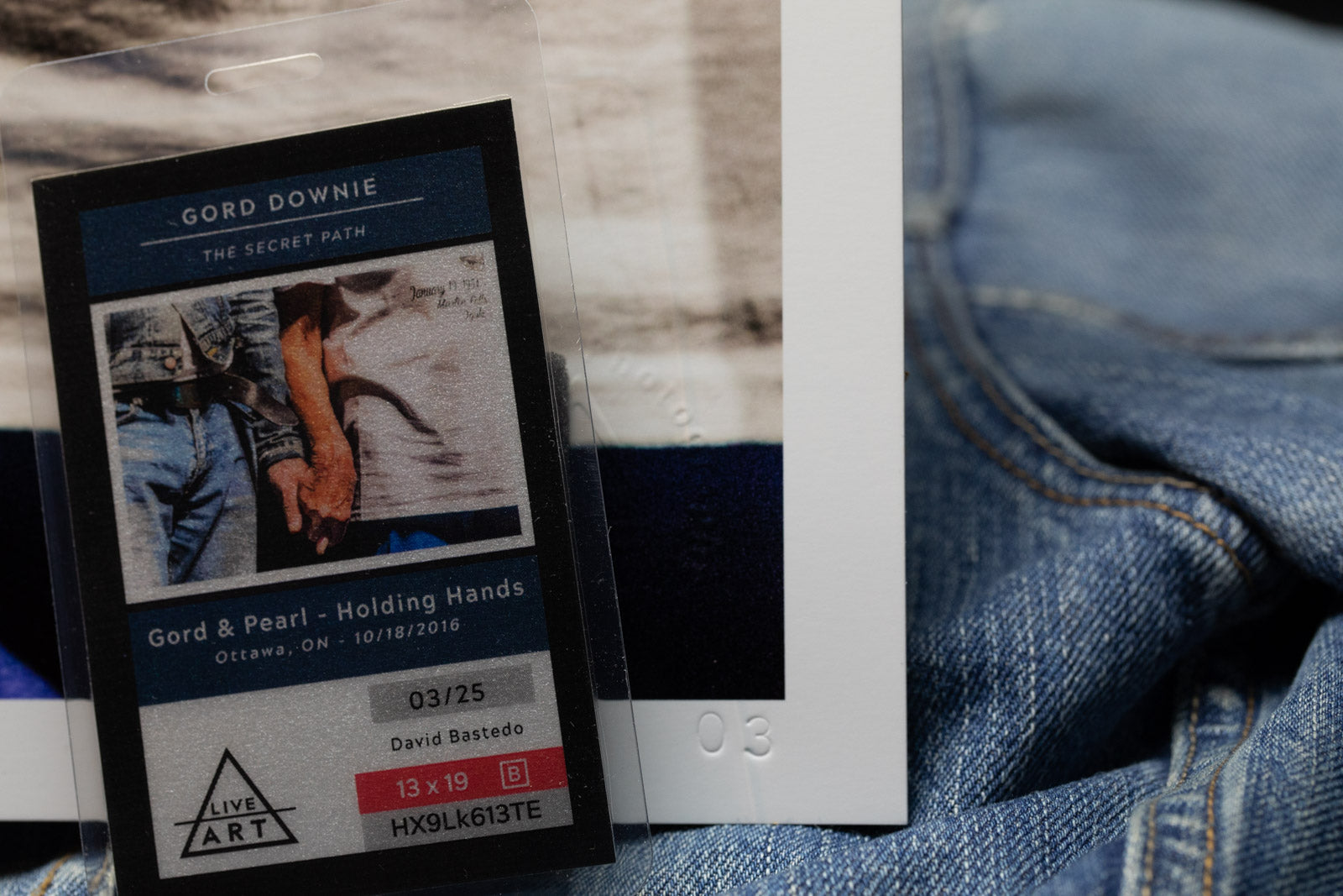 From the premiere of The Secret Path Shows in Ottawa, Gord & Pearl Holding Hands is an image captured of Gord Downie and Pearl Wenjack holding hands after the performance at The National Arts Centre in Ottawa on October 18, 2016.